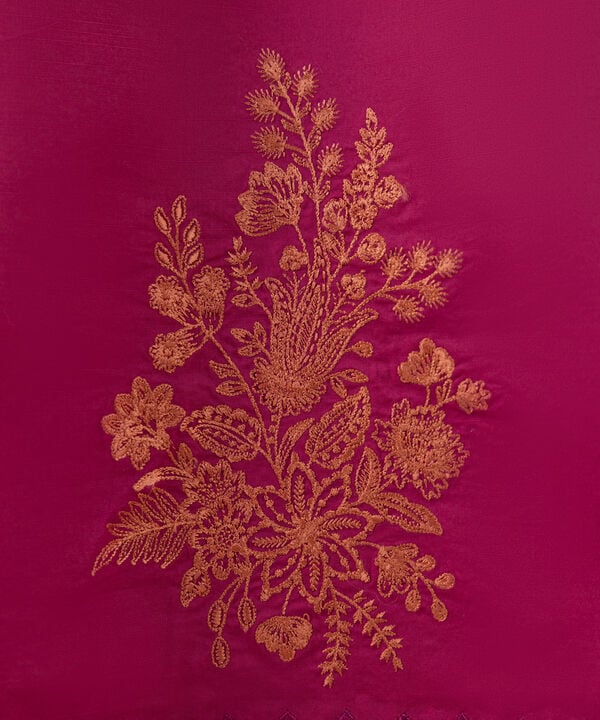 Embrace everyday chic in our embroidered fuchsia pink textured lawn shirt and dark peach cotton trousers.