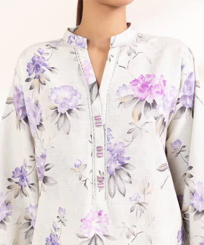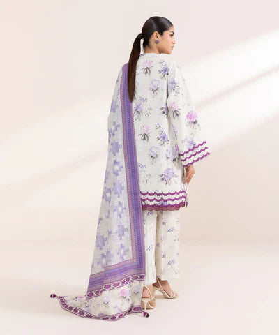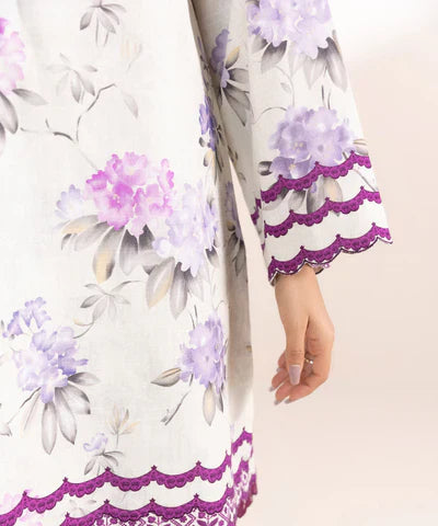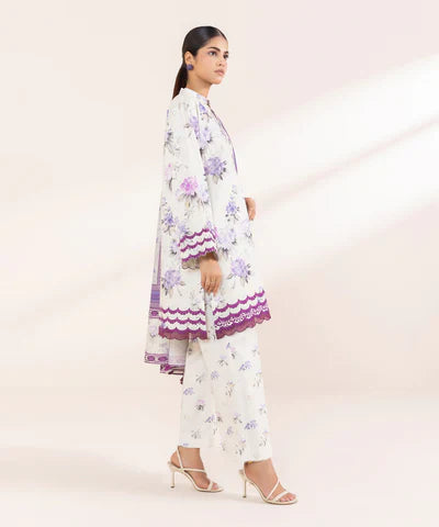 Elevate your style with our two-piece printed suit in ivory featuring a cambric shirt and a lawn dupatta.
