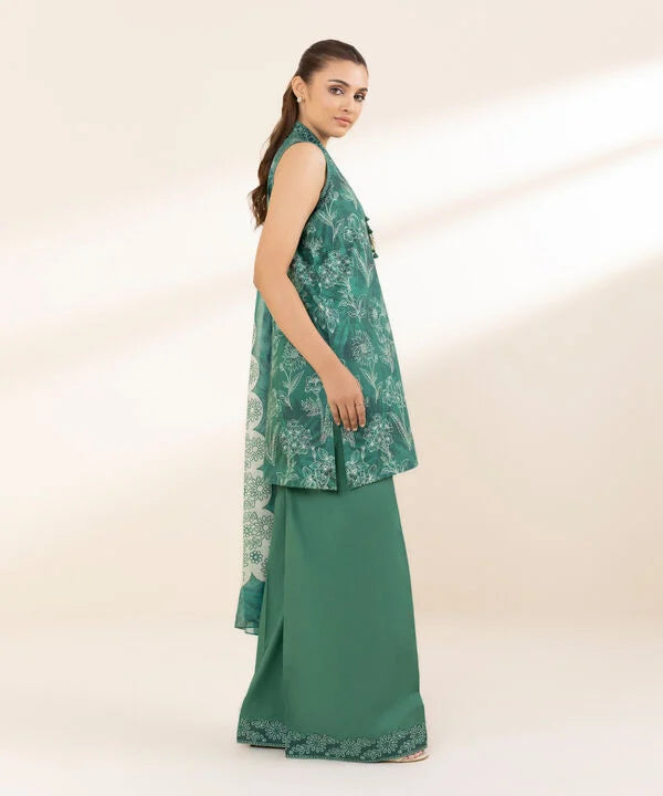 Make a statement with our two-piece ensemble in off white and green featuring a printed lawn shirt paired with a matching blended tissue dupatta.