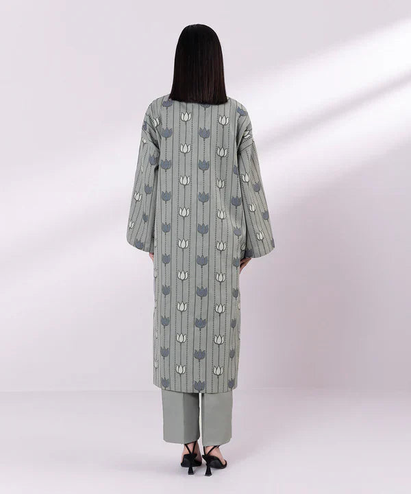 Curate a regal Eid look with our two-piece, grey suit featuring an extra weft jacquard shirt and cambric trouser.