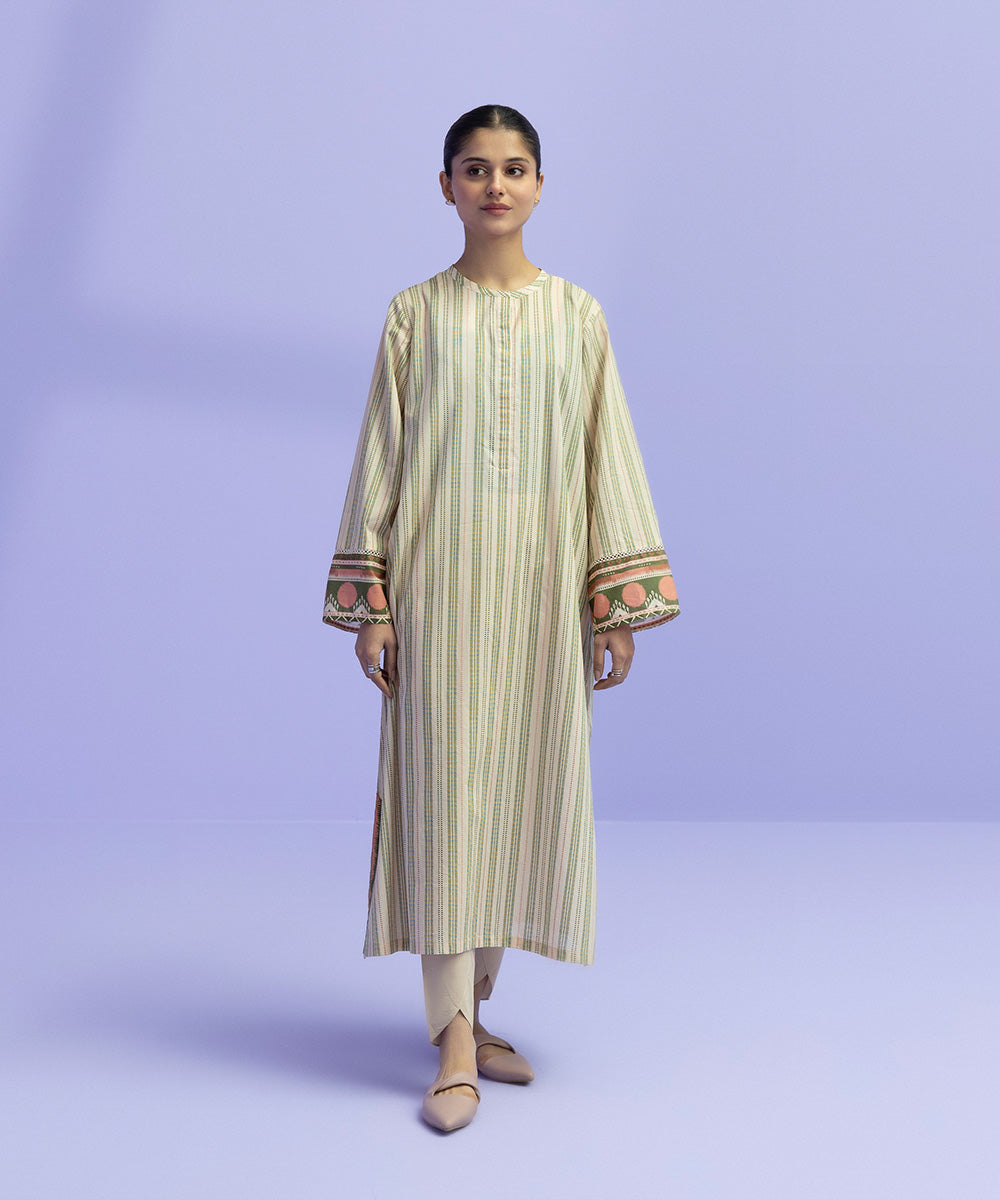 Printed Front, Printed back, Full Sleeves, Round Neck with Placket