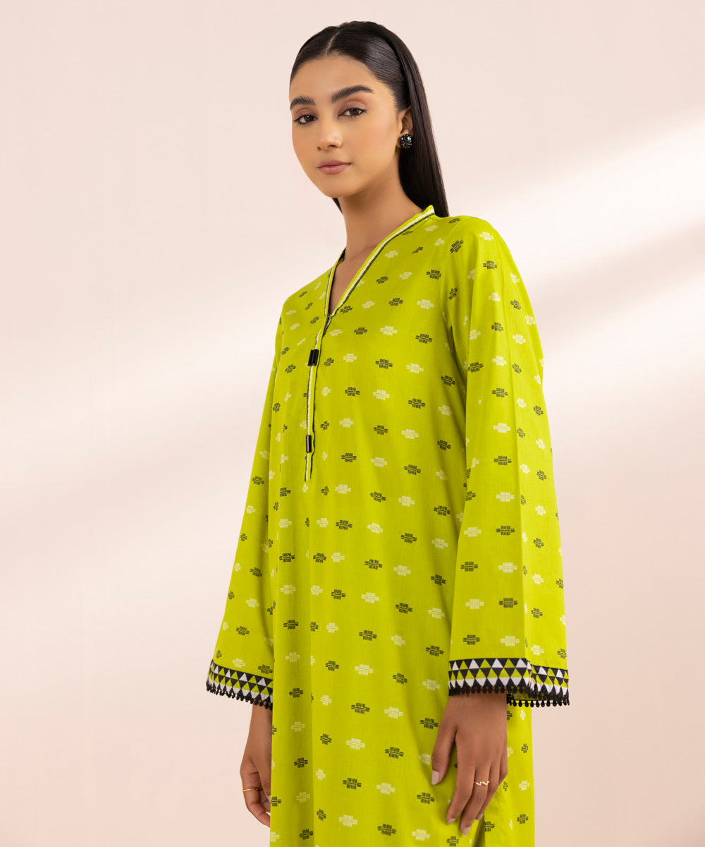 Opt for a vibrant everyday look in our lime yellow, printed lawn, long straight shirt.