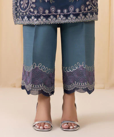 Trouser Dyed Viscose Raw Silk Trouser 2.5M Embroidered Trouser Border 1PC Fabric:Viscose Raw Silk Colour:Teal