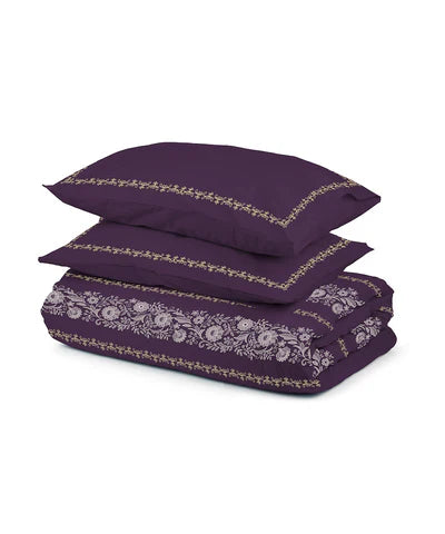 Refresh your winter space with our printed and embroidered Plum Bed in a Bag including a flat sheet, pillow cases, comforter and standard shams.