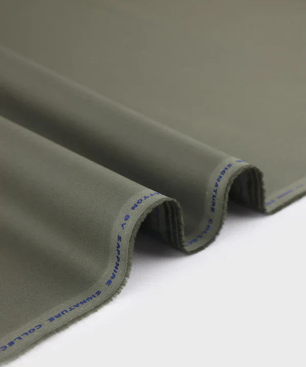 Elevate your wardrobe in our two piece, olive, cotton dobby suit.