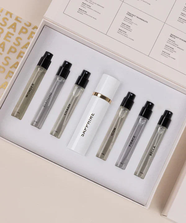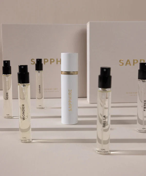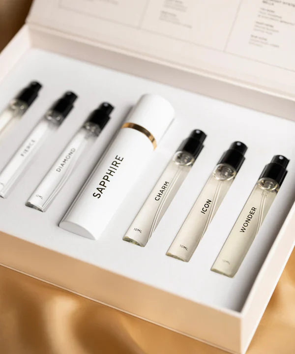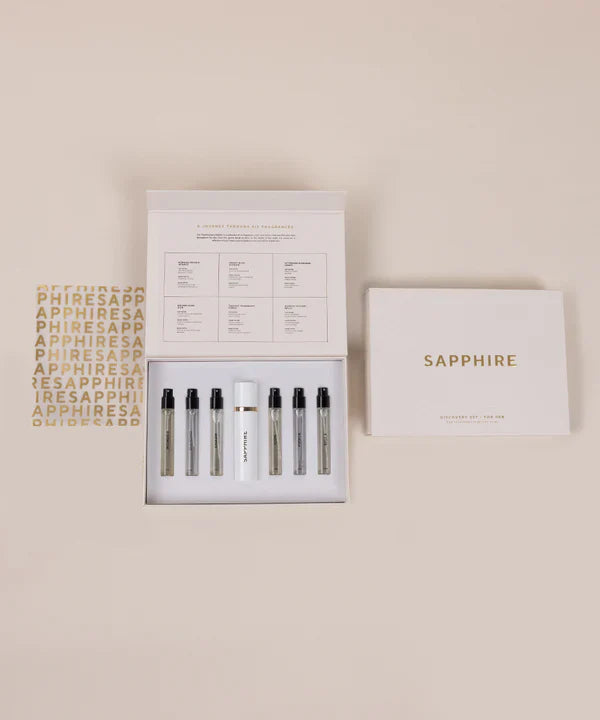 Experience SAPPHIRE's best-selling fragrances for women in this limited edition set, beautifully packaged in a gift box. Indulge in the luminous sensuality of orange blossom, the fresh allure of pomegranate & the delightful brightness of tangerine, enhanced by the delicate essence of lily of the valley.