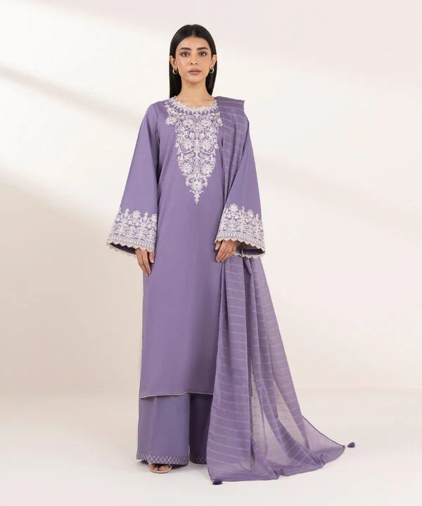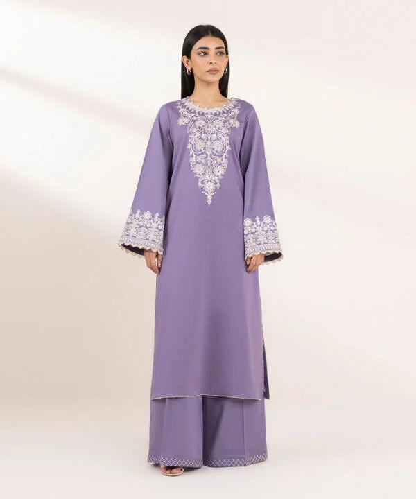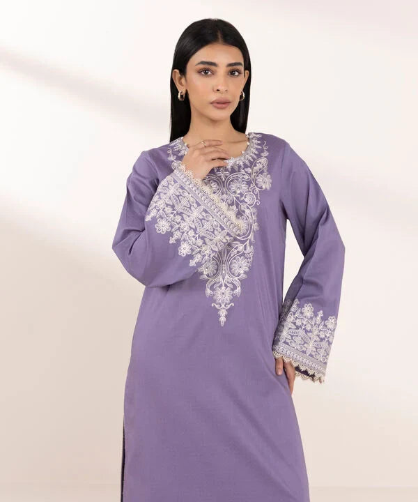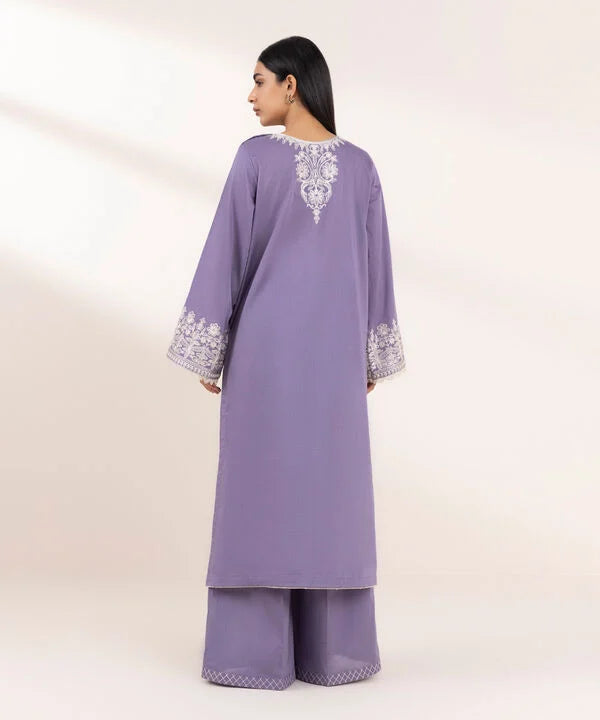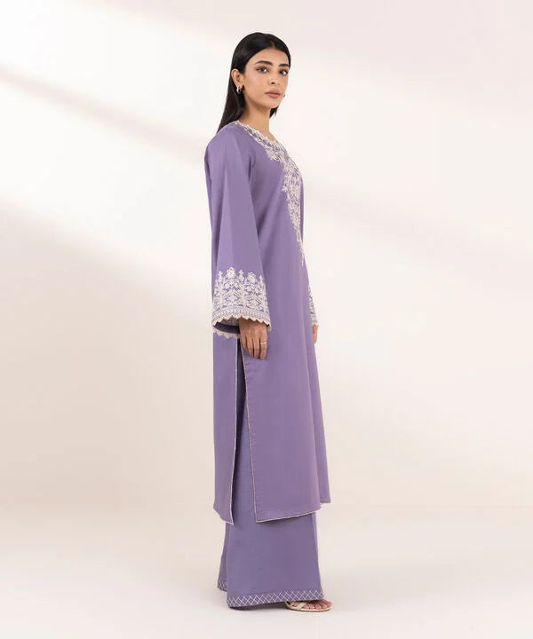 A-Line ShirtElevate your wardrobe in our purple embroidered, dobby A-line shirt with a round neckline.