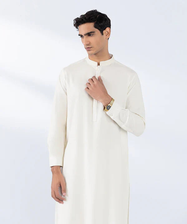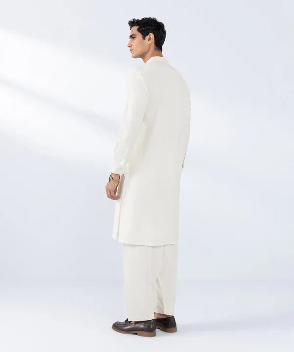 Embrace sophistication with our meticulously embroidered cream, wash and wear kurta shalwar.