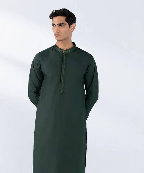 Embrace sophistication with our meticulously embroidered green, wash and wear kurta shalwar.