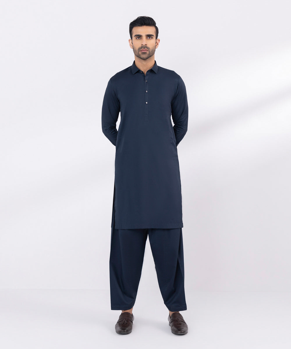 Make a dapper statement in our lightweight, and breathable navy two-piece suit. With the finest quality Egyptian cotton and premium ammonia finish, elevate your traditional look with unparalleled sophistication.
