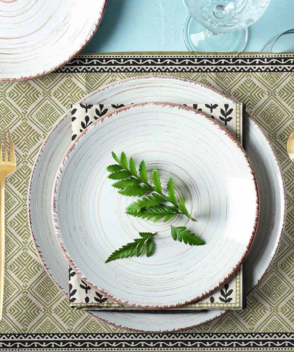 Bring a vibrant charm to your table space with our green and black block printed placemats.