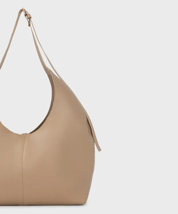 Make a standout statement with our off white, faux leather loose tote bag featuring an inside pouch.