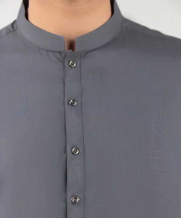 Make a dapper statement this season in our solid dark grey, premium wash and wear kurta and shalwar.
