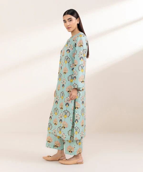 Printed Front Panel, Printed Back Panel, Round With Slit Neckline, Full Sleeves, Below Knee Length