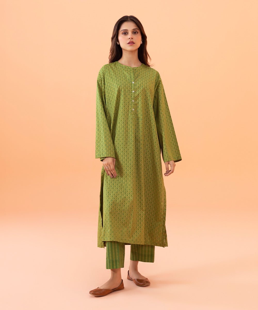 Printed Front, Printed Back, Full Printed Sleeves, Band Neckline With Slit