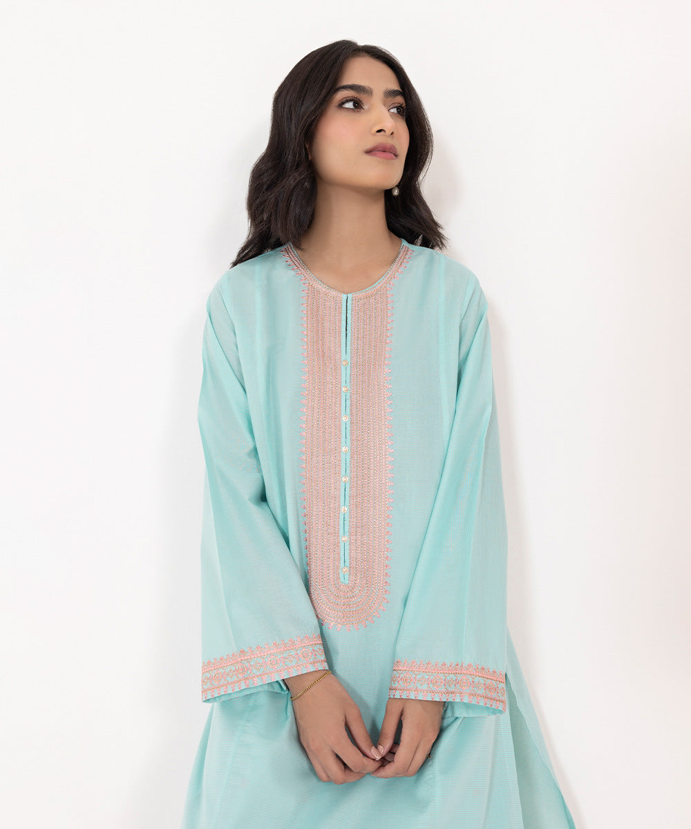 Make a refreshing statement in our blue embroidered straight silhouette.