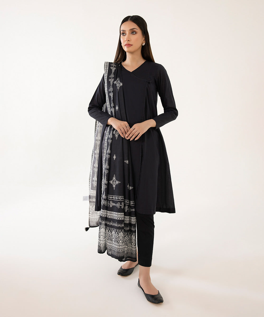 This monochrome capsule brings together embroidery and prints to create a unique range of designs. The collection includes detailed embroidered motifs and patterns in graphic blue giving the Angrakha silhouette paired with a Voile dupatta with tassels, a textured and layered look that makes a statement.