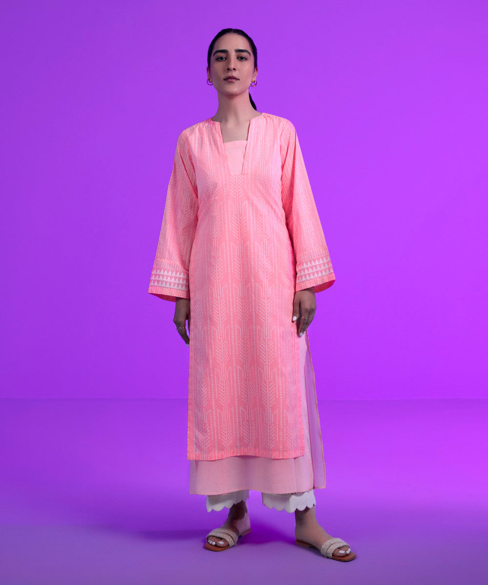 Printed Front, Printed Back, Round Neck with U neckline, Full Sleeves.