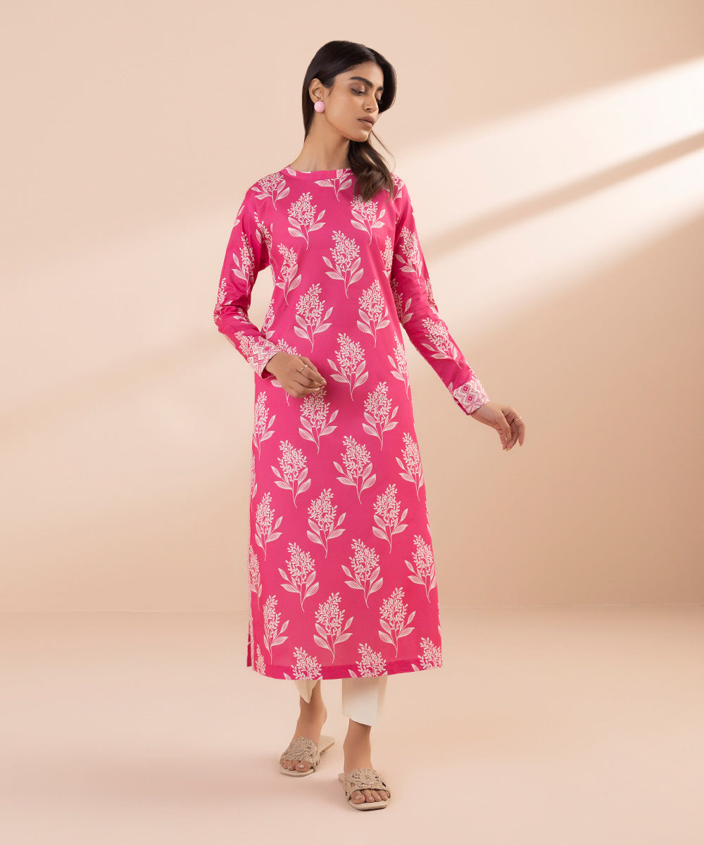 Keep it easy breezy in our printed lawn, fuchsia pink shirt piece featuring florals.